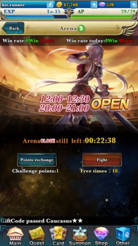 เป็นการต่อสู้กับผู้เล่นคนอื่นๆแบบเรียวทาม (สู้กับผู้เล่นจริงๆ) โดยเราสามารถเข้าสู้วันละ 10 ครั้ง ที่ลานประลองซึ่งลานประลองจะเปิดเฉพาะช่วงเวลา ยิ่งสู้เยอะยิ่งได้แต้มไปแลกของรางวัลได้