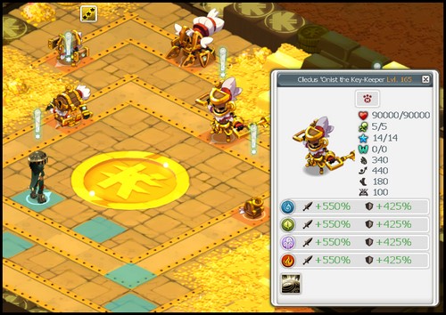 พอถึงห้องที่ 4 ห้องสุดท้ายก็จะได้พบกับความน่ากลัวของ มอนสเตอร์ที่มีชื่อว่า Cledus Onist the Key-Keeper ผู้รักษาประตูแห่งเมืองทองคำ ที่มี HP สูงถึง 90000