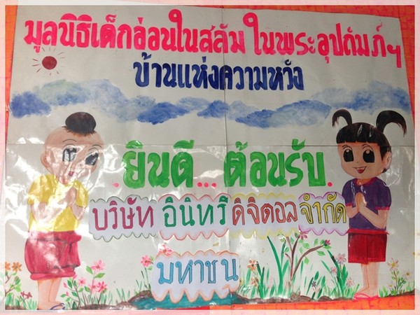 เมื่อทีมงานอินิทรีเดินทางถึงมูลนิธิเด็กอ่อนในสลัมฯ ก็รู้สึกสุขใจทันที เพราะน้องๆ ในมูลนิธิฯ วิ่งเข้ามาต้อนรับด้วยรอยยิ้มที่สดใส อีกทั้งยังทำป้าย “ยินดีต้อนรับ” ด้วยผลงานของน้องๆ ในสถานที่แห่งนี้ ทำให้รู้สึกถึงความตั้งใจในการต้อนรับทุกคนที่มาเยือนทันที และสร้างความปลาบปลื้มใจให้กับทีมงานได้มากพอสมควร