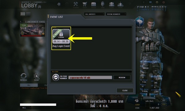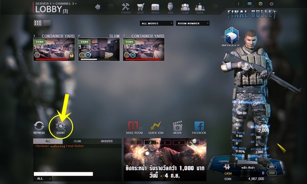 1. เมื่อเข้าเกมมายังหน้า Lobby แล้ว ให้กดที่ปุ่ม EVENT