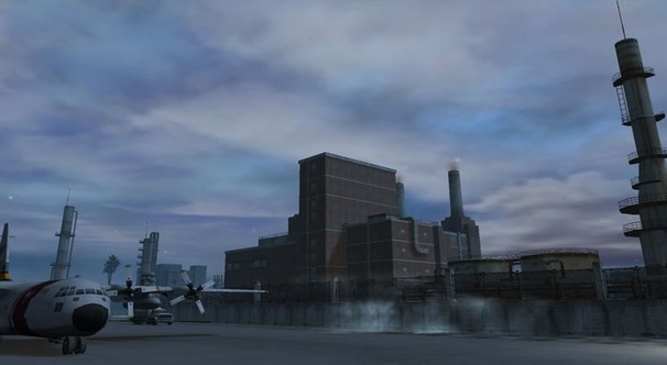 ภูมิประเทศ : เป็นลานจอดเครื่องบินในพื้นที่โล่งกว้าง แถบทะเลทราย มีโรงกลั่นน้ำมัน เครื่องบิน และร้านค้า