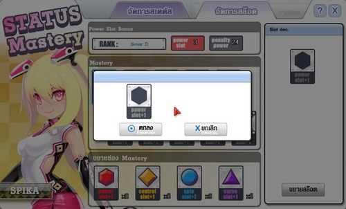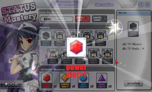 - การอัพสเตตัสสล๊อตแต่ละครั้งจะใช้ ผลึก TP ตามที่ตัวเกมกำหนด