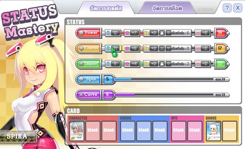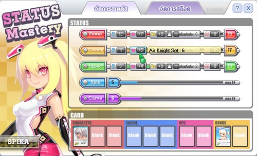เป็นหน้าที่ใช้อัพ/ดาวน์ สเตตัสของตัวละครในทุกๆ ค่า สามารถเอาเม้าส์ชี้เอาไว้เพื่อดูว่าสเตตัสต่างๆ นั้นมาจากอะไรบ้าง และสเตตัสรวมทั้งหมดของแต่ละค่าก็จะอยู่ที่ด้านหลัง