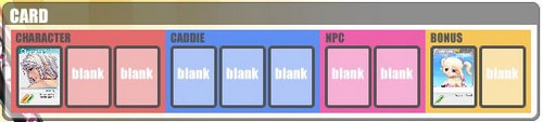 - Bonus x 2 ใบ (แบ่งเป็น Character 1 ใบ และ Caddie 1 ใบ โดยที่ช่อง Bonus นี้ จะต้องใช้ Bongdari Clip ในการใส่การ์ด)