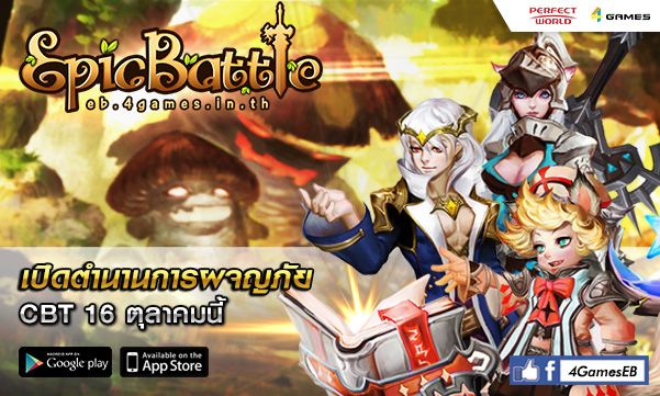 หลังจากที่ก่อนหน้านี้เปิดรอบ Beta Test ในแฟนๆ เข้าไปชิมลางกันบนระบบ iOS กันมาสักพักใหญ่ๆ ล่าสุด Epic Battle พร้อมให้เข้าไปสัมผัสของจริง! เปิด CBT อย่างเป็นทางการในวันที่ 16 ต.ค.57 ทั้งระบบ iOS และ Android รอบนี้มีกิจกรรมลดแลก แจก แถมพียบ! เฝ้าหน้าจอกันให้ดีๆ