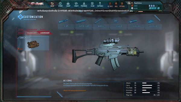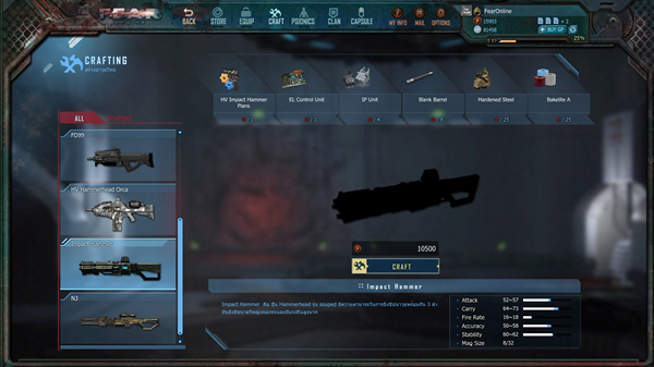 ใน F.E.A.R Online นอกจากเราจะเสริมความหล่อให้ตัวละครได้แล้ว เรายังสามารถปรับแต่งปืนได้อย่างหลากหลาย ไม่ว่าจะเป็น ปลอกเก็บเสียง, กล้องเล็ง, แม็กกาซีน หรือแม้แต่ลำกล้องก็สามารถทำได้ นอกจากนั้นยังมีระบบ Craft Weapon หรือการคราฟอาวุธ ที่ทำให้เราสามารถมีปืนพิเศษๆ เช่น ปืนเลเซอร์ ปืนยิงขีปนาวุธ หรือปืนหน้าตาล้ำๆ ที่เราไม่สามารถหาซื้อได้ อุปกรณ์ในการสร้างเราสามารถหาได้ง่ายๆ จากการเล่นในโหมดต่างๆ นี่เอง
