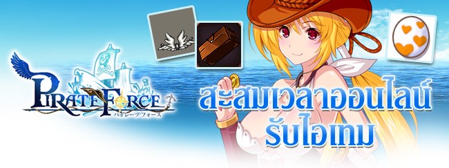 ขุมทรัพย์ล้ำค่า Pirate Force พร้อมแจกให้กับเหล่าโจรสลัดทุกน่านน้ำ!! รางวัลแห่งความเพียรที่อยากให้ทุกท่านได้รับ มอบส่งท้ายปีใหม่ แจกให้ใช้ต้อนรับปีใหม่ เพียงเข้ามาค้นหาขุมทรัพย์ทุกวัน ล่องเรือครบตามเงื่อนไขวันที่กำหนด รับไอเทมพิเศษ ฟรี!! ทันที ช่วงเวลาดีๆ อย่ารอช้า โอกาสพิเศษมีจำกัด!!