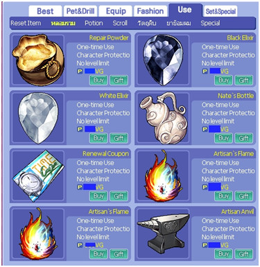 ไอเทมต่างๆ มีระดับดาว ไว้บอกความแรร์ด้วย