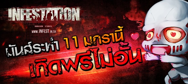 วันอาทิตย์พร้อมรบ รีบตบเท้าลุยไม่ต้องยั้ง มันส์ไปกับเกมส์ออนไลน์ Infestation เกิดฟรีไม่อั้นทั้งวันเต็มๆ เตรียมคลังอาวุธยุทโธปกรณ์ให้พร้อม (กดรับอาวุธฟรีทุกวันที่นี่) 11 มกรา มาโดนเลย!
