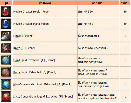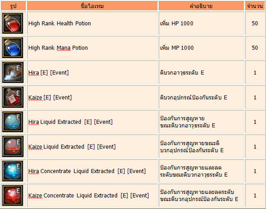 Items ที่ได้รับจาก [L] coupon :