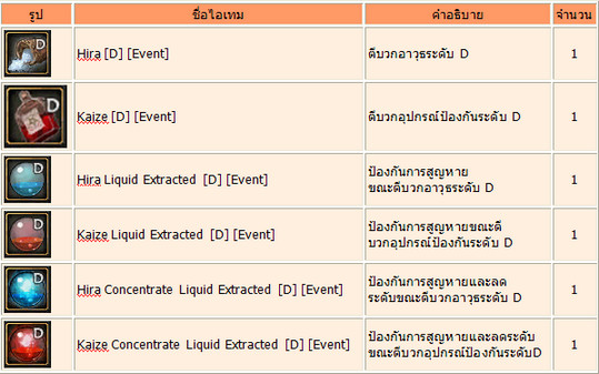 Items ที่ได้รับจาก [K] coupon :