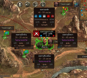 แผนที่ชายแดนของสงครามระหว่างก๊ก ที่ขณะนี้กำลังดำเนินการสงครามกันอยู่ ถ้าใช้เมาส์คลิกไปที่เขตแผนที่โลก หน้าต่างข้อมูลของสงครามชายแดนก็จะปรากฏขึ้น ให้เลือกสนามรบที่เหมาะกับเลเวลของตัวละคร