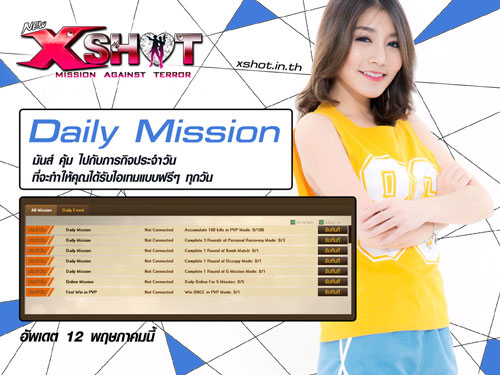 12 พ.ค. นี้ พบกับระบบใหม่โดนใจวัยรุ่น Daily Mission กับภารกิจที่สามารถทำได้ทุกวันมอบไอเทมหลากหลายชนิดไปใช้กันฟรีๆทุกวัน ติดตามรายละเยดได้ที่นี่ >> คลิกเลย <<