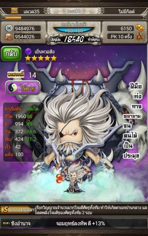 รายละเอียด : จอมยุทธ์สีม่วง / ระดับ 13 / Class A / ประเภท ดาเมจ