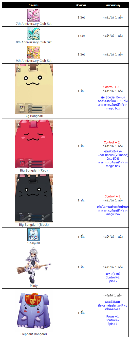 *EXP และ เงินปัง จะแอดให้ในวันที่ 27 พ.ค. ในระหว่างปิดปรับปรุงเซิฟเวอร์ ทั้งหมด