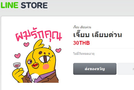 ตัวอย่างสินค้าใน Line Store ที่กำลังเป็นกระแสอยู่ในขณะนี้นั่นก็คือสติ้กเกอร์ลาย “อิเจี๊ยบ เลียบด่วน” แน่นอนว่าเพื่อนๆ ก็สามารถแลกรับ Line Gift Code จากระบบและไปโหลดสติ้กเกอร์ลายอิเจี๊ยบมาไว้ในเครื่องได้เลย เท่ากับว่าได้สติ้กเกอร์มาฟรีแบบไม่ต้องเสียเงินสักบาทเลยก็ว่าได้