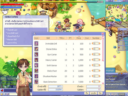 จะเห็นว่ามี NPC ขายสกิลอยู่ 4 คนด้วยกัน ซึ่งจะแบ่งออกตามสายที่เล่นนั่นเอง โดยที่