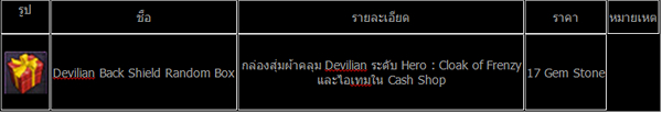 Rare Item ที่น่าสนใจจากกล่อง Devilian Back Shield Random Box
