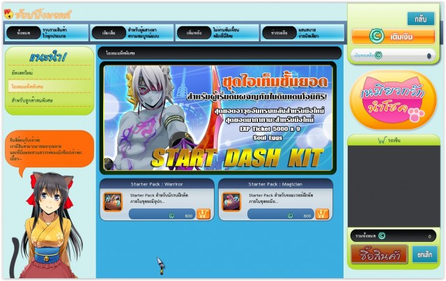 แม้ช่วงเริ่มต้นจะเกมจะค่อนข้างง่าย แต่เมื่อเล่นไปซักระยะก็จะต้องฟาร์มหาอาวุธต่างๆ เพื่อที่จะไปสู้กับระดับที่สูงๆ ดังนั้นการใช้ Start Dash Kit ใน Item mall จะช่วยให้ LV ตอนแรกไวมาก ซึ่งใน Starter จะมี 2 ชุดได้แก่ ชุดนักรบและชุดนักเวทย์โดยมีของในชุดดังนี้