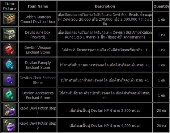 4. ผู้เล่นต้องมีเลเวลร่างเดวิลมากกว่าหรือเท่ากับ 15 เท่านั้น จึงจะได้รับของรางวัล