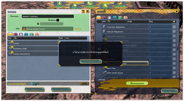 นอกจากนั้นหากต้องการจะขายตำราสร้างอาวุธหรือตำราสร้างมากาทามะที่หาได้ยากยิ่งแล้วล่ะก็จะต้องใช้ Silver Bazaar Ticket หรือ Gold Bazaar Ticket เท่านั้นด้วยนะ!