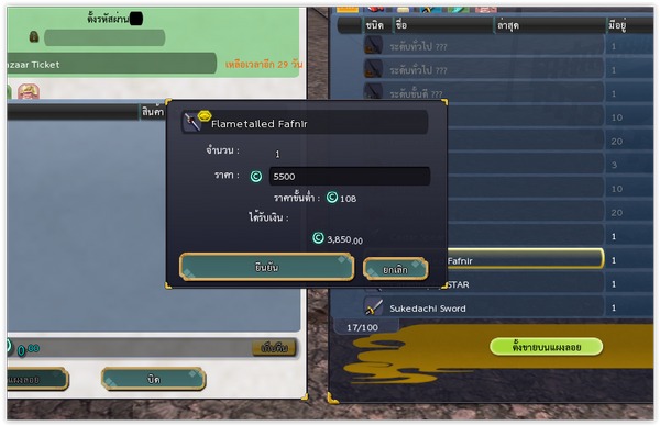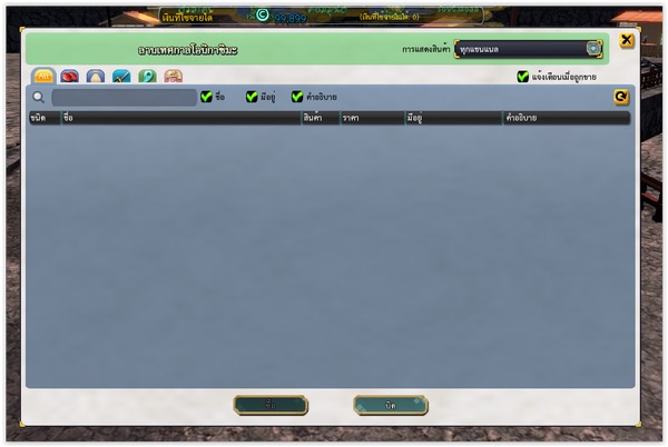 หน้าตาร้านขายไอเท็มแบบซื้อ Ticket ที่จะทำการยกเว้นภาษีจากการขายไอเท็ม