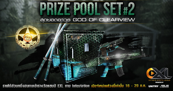 ร่วมเป็นส่วนหนึ่งในการสนับสนุนวงการ e-Sport ในศึกการแข่งขัน EXL2015 Presented by UNITRY | ASUS กับเซตไอเทม Prize Pool#2 ตำนานศาสตราวุธเทพแห่ง Clearview ที่นำรายได้ส่วนหนึ่งจากการจำหน่ายสมทบรางวัลแชมป์ Infestation ซึ่งจากเซตแรกที่ทำให้เงินรางวัลสูงไปแล้วถึง 1,687,300 บาท และจะยังเพิ่มมากขึ้นไปอีก ด้วยเซตอาวุธแห่งตำนานผู้พิทักษ์ God of Clearview ที่เปิดจำหน่ายตั้งแต่วันนี้ – 29 กรกฎาคมศกนี้