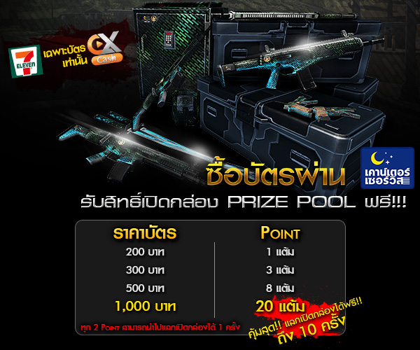 พร้อมโปรโมชั่นพิเศษต้อนรับการเริ่มเปิดจำหน่ายบัตร EX Cash ผ่านระบบเคาน์เตอร์เซอร์วิส ที่ 7 Eleven ทุกสาขา รับสิทธิ์เปิดกล่อง Prize Pool#2 ฟรีๆ แบบคุ้มสุดๆ ตั้งแต่วันนี้ – 31 กรกฎาคม 2558