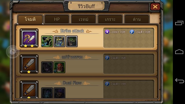 เมื่อเราสะสมฮีโร่และอัพเกรดฮีโร่ให้ตรงกับเงื่อนไขของเกมแล้ว เราจะสามารถได้รับบัฟฮีโร่เพิ่มเติมมา ซึ่งจะเพิ่มค่าพลังต่างๆให้พอสมควร และยังสามารถใส่ได้สูงสุดถึง 4 บัฟอีกด้วย