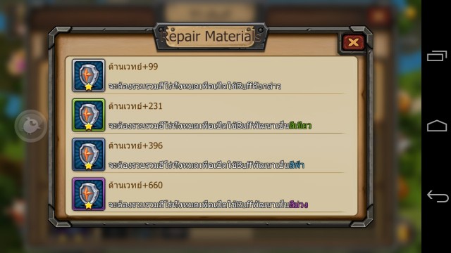 - ฝังอัญมณีและอัพเกรดอาวุธเครื่องป้องกัน