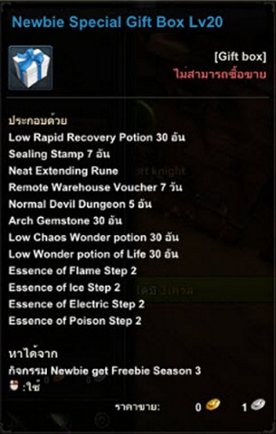 - เมื่อตัวละครถูกสร้างและเข้าสู่เกมแล้วจะได้รับไอเทมซัพพอร์ต