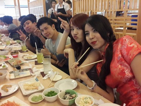 ภาพกิจกรรมก่อนทานบุฟเฟ่ต์อาหารญี่ปุ่น