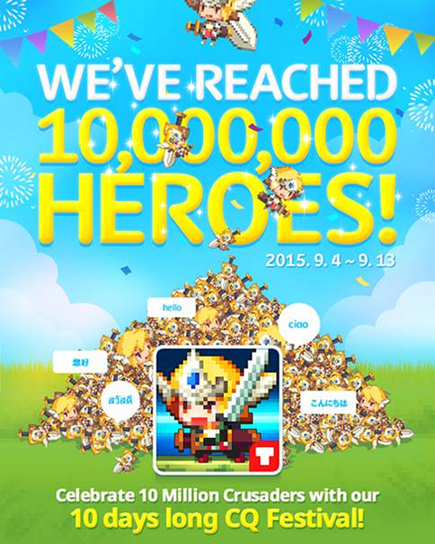 ฉลองครบ 10 ล้านดาวน์โหลดทั่วโลกเกม Crusaders Quest จัดกิจกรรมมากมาย เพื่อตอบแทนผู้เล่นที่ให้การสนับสนุนมาโดยตลอด ทางเราได้ทำกิจกรรมทั้งใน Facebook และ ในเกม เพื่อเฉลิมฉลองตลอดทั้งสัปดาห์ เพื่อนๆสามารถเข้าร่วมสนุกได้ที่ bit.ly/CQ10million สามารถเข้ามา ลุ้นรับฮีโร่ 6 ดาว ไปเลยฟรี !!