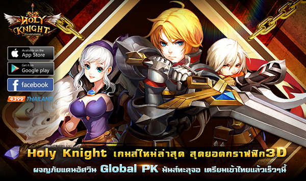 สวัสดีจร้าเหล่าเกมเมอร์ทุกท่าน วันนี้ก็นำเกมส์ใหม่สุดมันส์จากค่าย 4399 มาฝากกันอีกแล้วคร้าบ เกมส์ใหม่สุดมันส์ที่การันตีความมันส์จาก ไต้หวัน และ เกาหลี มาแล้ว มาคราวนี้ก็ถึงเวลาของเกมเมอร์ชาวไทยกันแล้วกับเกมส์ Holy Knight-ตำนานอัศวินศักดิ์สิทธิ์ พร้อมระเบิดส์ความสนุกกับเซิร์ฟ Global ที่ให้ผู้เล่นได้ฟาดฟันกันข้ามประเทศไปกันเลย