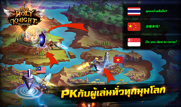 ได้ชื่อว่าเป็นเกมส์แบบ ARPG แล้ว จะพลาดได้ยังไงกับระบบการ PK ซึ้งใน Holy Knight-ตำนานอัศวินศักดิ์สิทธิ์ ก็จัดเต็มให้กับผู้เล่นตั้งแต่ Patch แรกกันไปเลย ไม่ว่าจะเป็นการ 1v1 2v2 หรือจะเป็น Guild War ที่จัดมาพร้อมเพื่อให้ผู้เล่นได้ลิ้มรสความมันส์กันแบบจุใจ นอกจากนี้ยังมีการ PK นอกเมืองที่ผู้เล่นสามารถท้าทายผู้เล่นอื่นได้อย่างอิสระ ไม่ชอบใครก็ลุยไปได้เลยอย่างเต็มที่ อิอิ