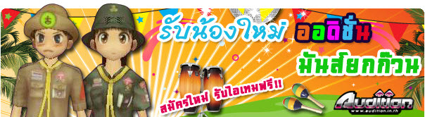 แมะๆแหมมมม!! มีฉลองปิดเทอมกันแล้ว ก็ต้องมีฉลองเปิดเทอมกันด้วยซิถึงจะเรียกว่า “จัดเต็ม”สำหรับ เกมส์แด๊นซ์ยอดฮิตที่สุดของเมืองไทย “Audition” คราวนี้มาพร้อมกับกิจกรรม รับน้องใหม่ ออดิชั่น มันส์ยกก๊วน เปิดรับสมัครนักเรียนใหม่ ต้อนรับเปิดเทอมนี้ พร้อมกิจกรรม มันส์สุดเหวี่ยง รับน้องใหม่ “มาเมื่อไหร่มันส์เมื่อนั้น“ สมัครได้เลยง่ายๆ แจกไอเทมแรร์สุดน่ารัก