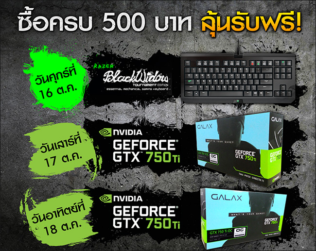 – วันอาทิตย์ ที่ 18 ต.ค. : การ์ดจอ GALAX GTX750Ti 1 ชิ้น
