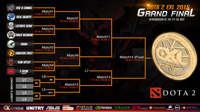 ตารางเวลา และสายการแข่งขัน DOTA 2