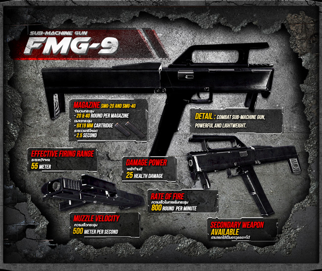 Sub-machine กระบอกใหม่ล่าสุด หาได้จากตู้ Gachapon C (สีแดง) พลังทำลายอยู่ที่ 25 Damage ความพิเศษอยู่ที่มันสามารถติดตั้งได้เป็นทั้งปืนหลัก หรือปืนรองก็ได้ รายละเอียดอื่นๆ ลองคลิกอ่านที่รูปภาพ ใครอยากได้มาครอบครองอย่าลืมนะตู้ Gachapon สีแดงเท่านั้น!