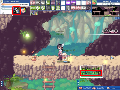 ก่อนใช้ ไปตีลิงขี่เมฆ ได้ตัวละ 21XP เท่านั้น (สกิลที่เห็นเป็นสกิลบัพจาก Shaggy ที่เพิ่มแม่นยำ)