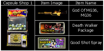 Capsule Shop 1: ปืน God of MG36 ใช้เหรียญชนิด SP ในการลุ้นรับ กำหนดยศที่ จ่าสิบตรีขั้น 1 เป็นต้นไป