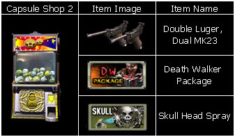 Capsule Shop 2: ปืน Double Luger ใช้เหรียญชนิด DE ในการลุ้นรับ กำหนดยศที่ ร้อยตรีขั้น 1 เป็นต้นไป