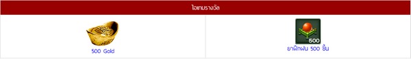 • ในช่วงเวลากิจกรรม เพื่อนๆ ที่เข้ามาเล่นเกม มังกรหยก Frontier ทุกเซิร์ฟเวอร์ จะได้รับ ทอง 500 Gold และยาฝึกฝน 500 ชิ้น ทันที