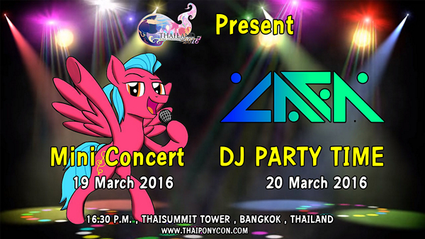 ครั้งแรกเลยทีเดียวสำหรับงานนี้ ที่เราจะได้พบกับสองนักดนตรี สองชาติจากประเทศมาเลเซีย และประเทศสิงคโปร์ ที่จะมาร่วมสร้างสีสันให้กับงาน ด้วยเพลงที่แต่งโดยแฟนการ์ตูน My Little Pony เพื่อแฟนโดยเฉพาะ!