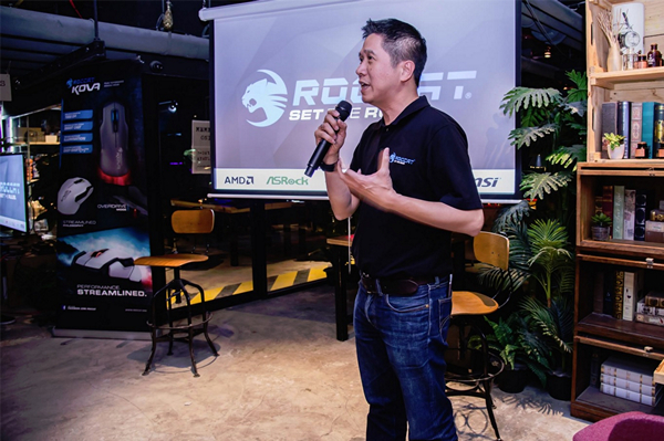 (ขวา) คุณ Mr. Cambo Huang Head of Sales APAC ผู้ผลิตอุปกรณ์เกมมิ่งเกียร์ของทาง ROCCAT
