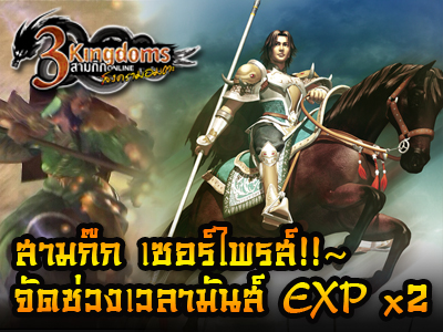สามก๊กออนไลน์ จัดช่วงเวลามันส์ EXP x2 ช้าหมด อดเลเวลกระฉูด