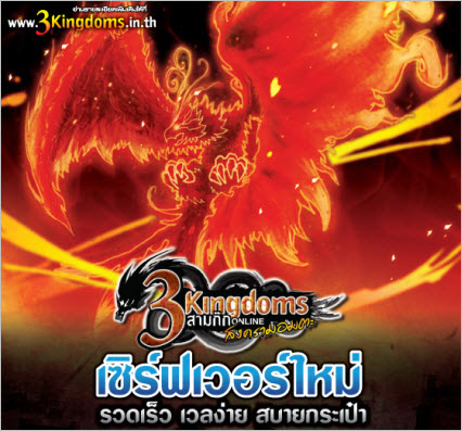 อีกเพียงไม่นาน ที่เปลวอัคคีจากไฟสงครามการต่อสู้ชิงเมือง จะระอุเดือดขึ้นอีกครั้ง เมื่อ “วิหคเพลิง” สัตว์ในตำนาน จะโบยบินสู่ดินแดนสามก๊ก ในนามของเซิร์ฟเวอร์ใหม่ล่าสุด ที่พร้อมอัพเดทให้สัมผัสกับประสบการณ์ความสนุกครั้งใหม่ ในวันจันทร์ที่ 13 มิถุนายน 2554 นี้
