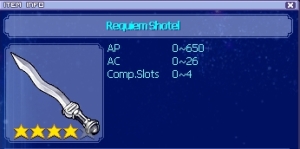 ไอเทมประเภท Requiem อุปกรณ์ระดับ 4 ดาว สามารถหาได้จากการนำไอเทมประเภท Chaos มาแลกเปลี่ยน โดยค่าที่ได้จะเป็นค่าแบบสุ่ม