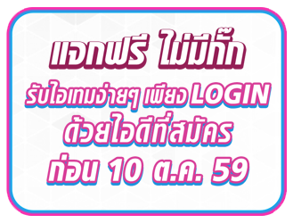 แจกฟรีไม่มีกั๊ก: เพียงแค่นำไอดีที่สมัครก่อนวันที่ 10 ต.ค.59 มาล็อคอินเล่นเกม ก็รับไอเทมจากเกมโปรดไปเลยง่ายๆ