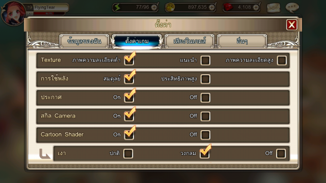 – Cartoon Shader : เปิด/ปิด